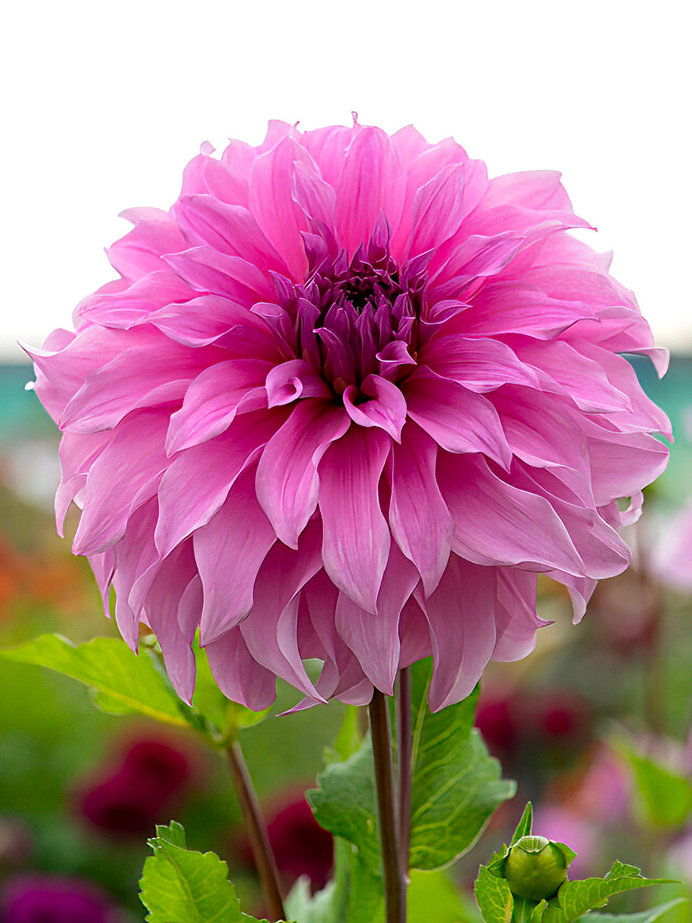 Dahlia ‘Vassio Meggos’ is a striking informal decorative dahlia with large, soft lavender-pink blooms that can reach up to 25 cm across. Each flower is full and rounded, with slightly reflexed petals that give it a soft, textured appearance. This variety blooms from mid-summer until the first frosts, providing a long season of colour.